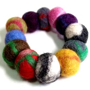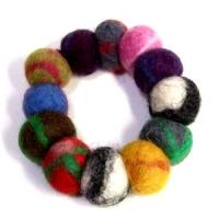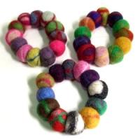 カラフルなフェルトのボールが連なったブレスレットです。腕もとの存在感が出せるので、ワンポイントのオシャレに最適です。カラフルな色合いが楽しい気分にさせてくれます。