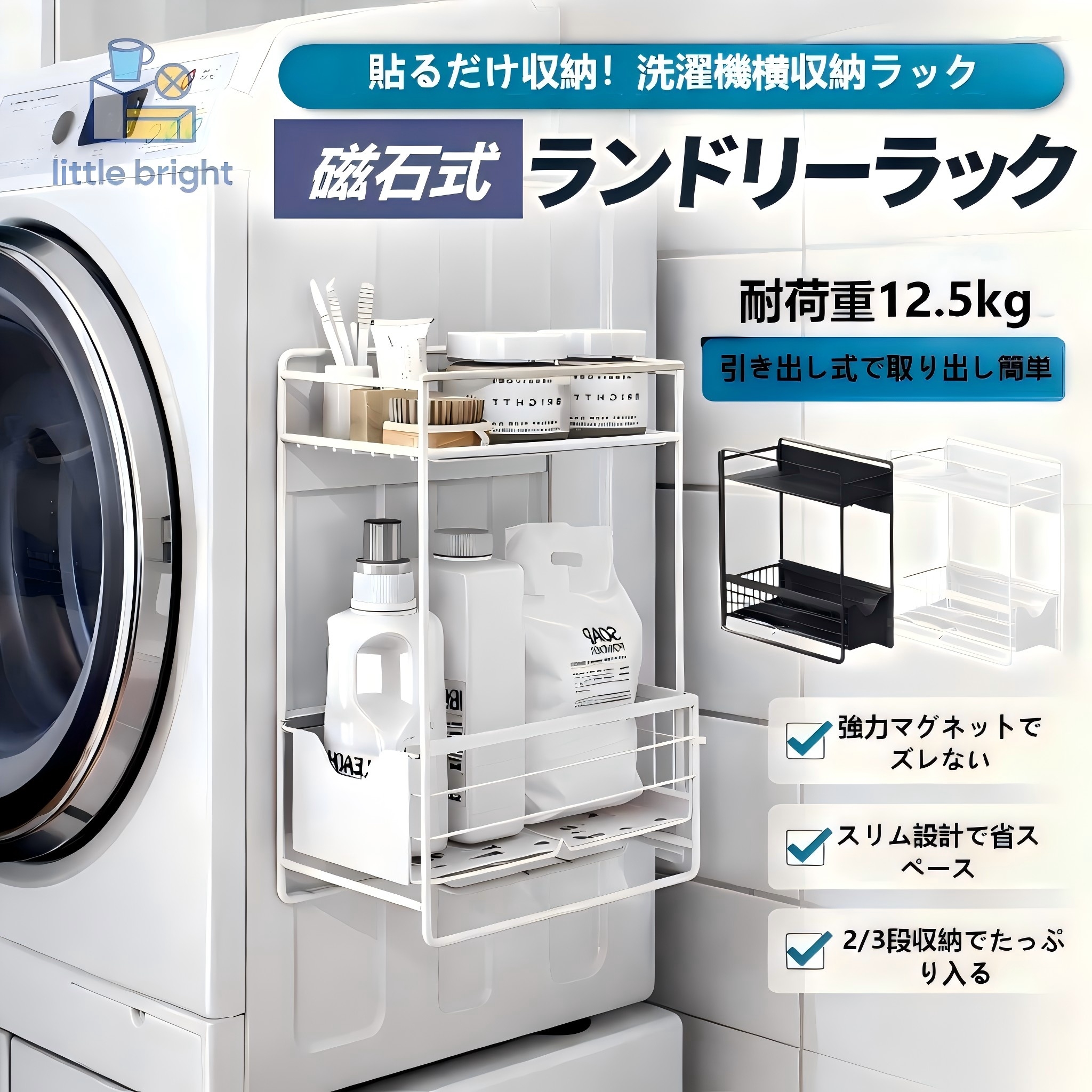 ランドリーラック 洗濯機横 マグネット 収納ラック 引き出し付き 2段 3段タイプ 隙間収納 スリム設計 洗剤ラック 大容量 省スペース 磁石固定 キッチン 収納棚