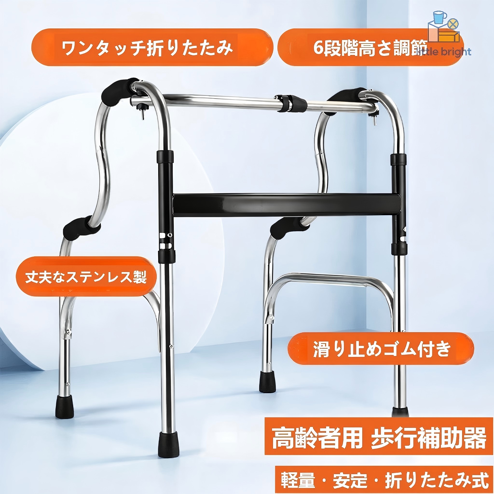 高齢者の歩行をしっかりサポートする折りたたみ式歩行器です。軽量で扱いやすく、介護用・リハビリ用として幅広くご使用いただけます。室内・屋外どちらにも対応し、日常生活を安心してサポートします。