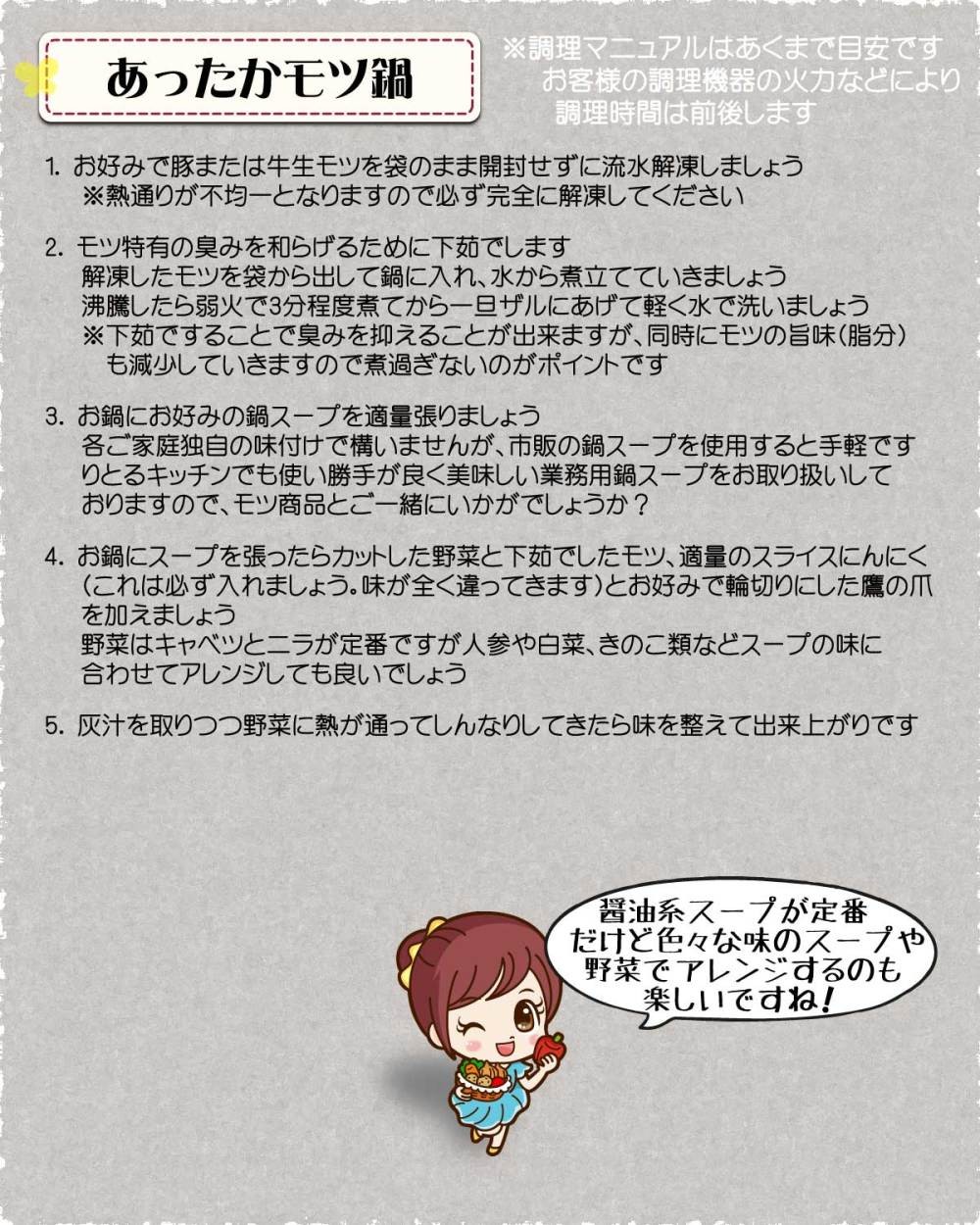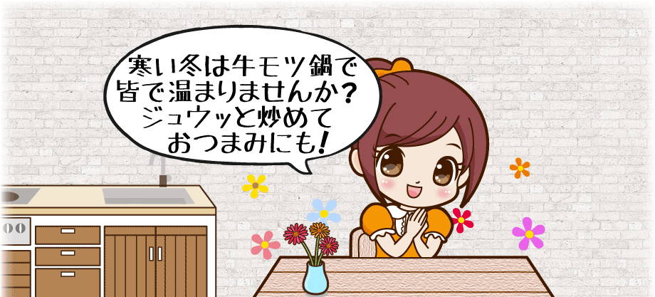 もつ鍋にしたり、塩胡椒や焼肉のたれなどお好みの調味