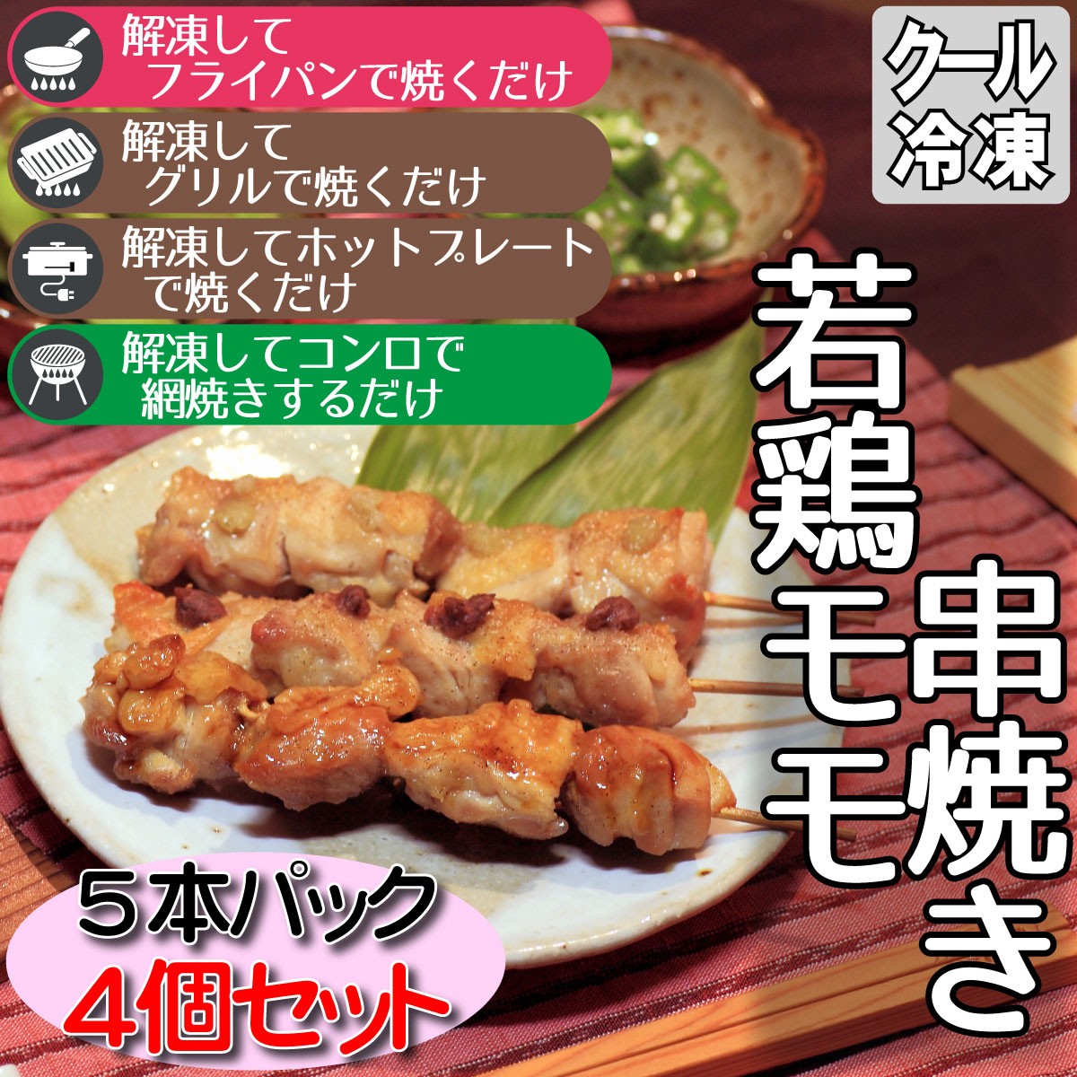 焼き鳥 若鶏 モモ串焼き 5本パック4個 おつまみ 串カツ バーベキュー 保存食
