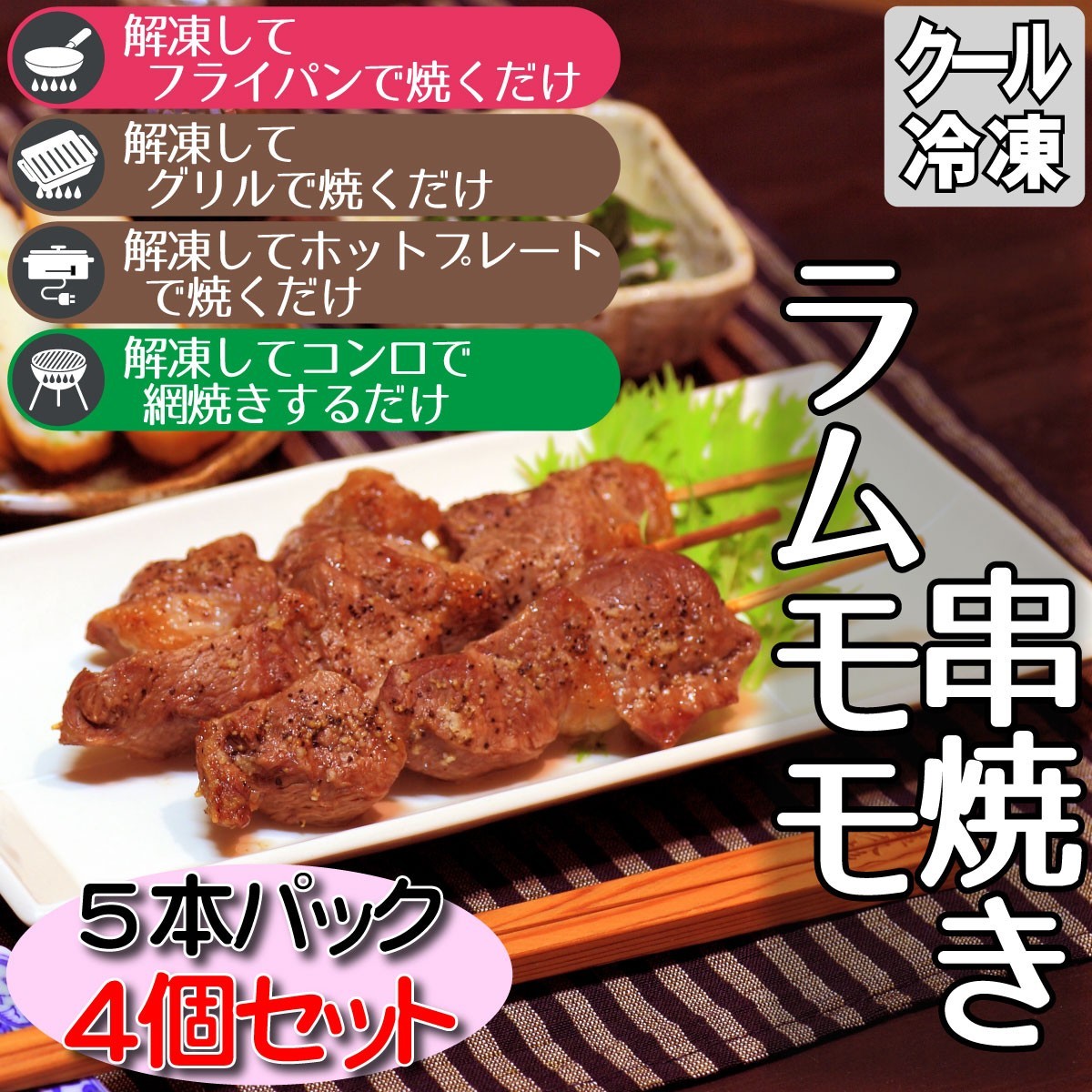 解凍後に焼く(炒める)だけで手軽に美味しいラムモモ串