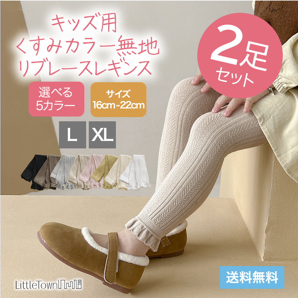 キッズ レギンス リブ レース 2足セット 子供 靴下 キッズレギンス アースカラー リブ編み くすみカラー 女の子 保育園 幼稚園 小学生 女児用 かわいい