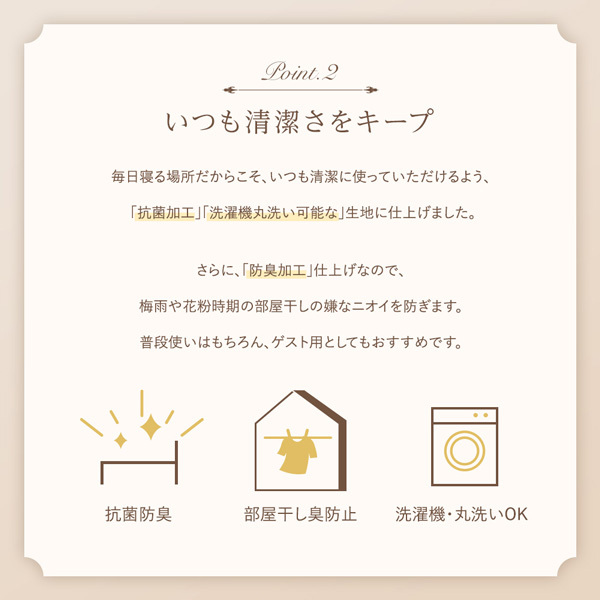 毎日寝る場所だからこそ、いつも清潔に使っていただけるよう、
