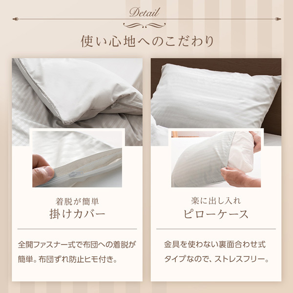 掛けカバー:全開ファスナー式で布団への着脱が簡単。布団ずれ防止ヒモ付き。