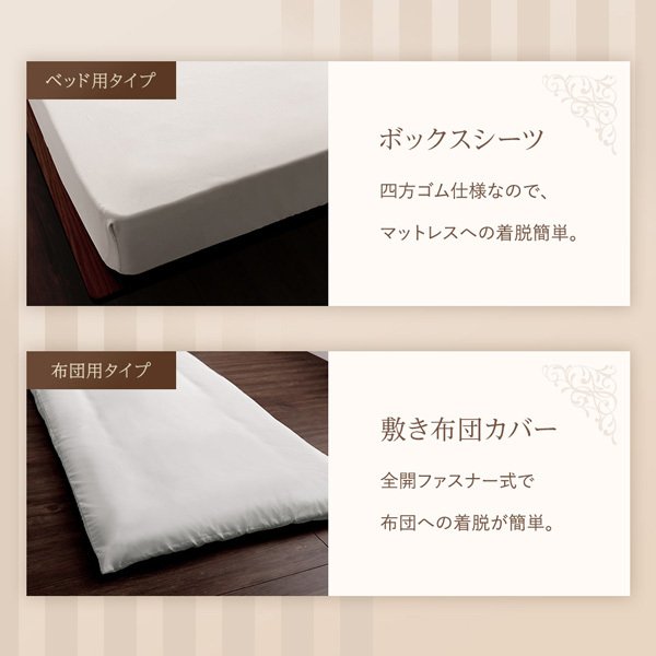 敷き布団カバー:全開ファスナー式で布団への着脱が簡単。