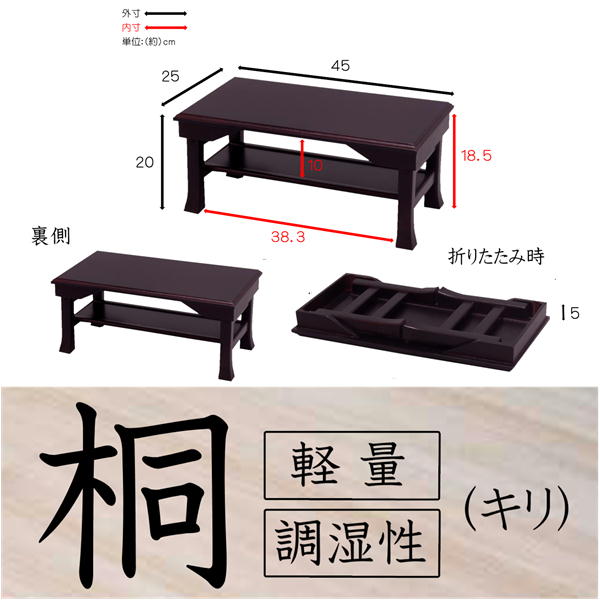 【商品名】 ミニテーブル 経机 幅45cm ブラウン 木製 桐製 軽量 持ち運び便利 折りたたみ便利机 供養台 配膳台 完成品 お仏壇 仏間 リビング 【ジャンル・特徴】 ミニ テーブル 経机 便利 供養 台 配膳 折りたたみテーブル 折り畳みテーブル フォールディングテーブル 仏壇 仏間 リビング ダイニング みにてーぶる きょうづくえ はいぜんだい おりたたみてーぶる 桐 天然木 軽い 移動便利