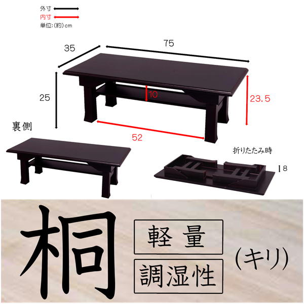 【商品名】 ミニテーブル 経机 幅75cm ブラウン 木製 桐製 軽量 持ち運び便利 折りたたみ便利机 供養台 配膳台 完成品 お仏壇 仏間 リビング 【ジャンル・特徴】 ミニ テーブル 経机 便利 供養 台 配膳 折りたたみテーブル 折り畳みテーブル フォールディングテーブル 仏壇 仏間 リビング ダイニング みにてーぶる きょうづくえ はいぜんだい おりたたみてーぶる 桐 天然木 軽い 移動便利