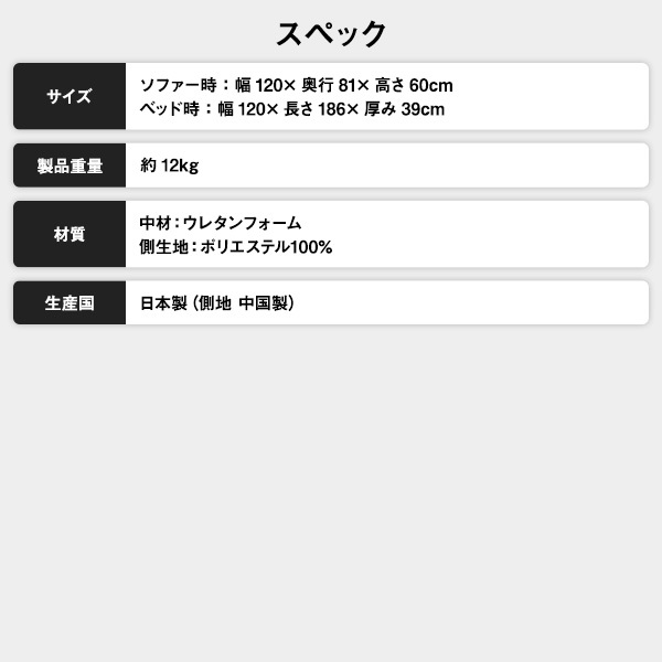 ベッド時:幅120x長さ186x厚み39cm