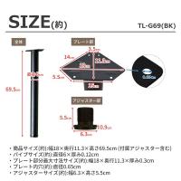 (約)幅18×奥行11.3×高さ69.5cm (付属アジャスター含む)、スチールパイプサイズ(約)直径6cm×厚み0.12cm、アジャスターサイズ(約):直径6.3cm、プレート内穴サイズ(約)直径0.65cm