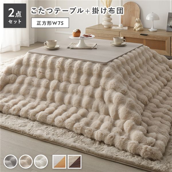 こたつ 2点セット こたつテーブル 正方形 約75×75cm ホワイトウォッシュ×ナチュラル + こたつ布団 約190×190cm ベージュ カジュアル コタツ 折脚 + ポコ...
