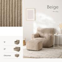 1人掛けソファ+オットマン:(1)55×41.5×33.5cm・16.8kg、(2)31×20×31cm・3.9kg