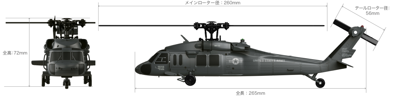 タクティカルな質感の特殊部隊風仕様。 オプティカルフロー搭載で安定性が格段に進化。 ●位置のズレを補正し、安定したホバリングを実現するオプティカルフローセンサを搭載 ●特殊部隊を思わせるクールなマットブラック基調のカラーリング ●エアインテークや機体表面のリベットをインジェクション成形でリアルに再現 ●メインモーターに高出力・高効率ブラシレスモーターを搭載 ●高電圧3.8VハイボルテージLiPoによりパワフルなフライトを実現 ●可変ピッチ機構の採用により、繊細なホバリングやアグレッシブな上昇下降が可能 ●実機を彷彿させる後退角のついた4枚ローターブレード仕様 ●操作モードの切り替え可能な、技術適合証明取得済み2.4GHz送信機が付属 ●バッテリーを含めた総重量99gの航空法規制対象外機種 ●専用ディスプレイスタンド、ランディングパッドが付属 |