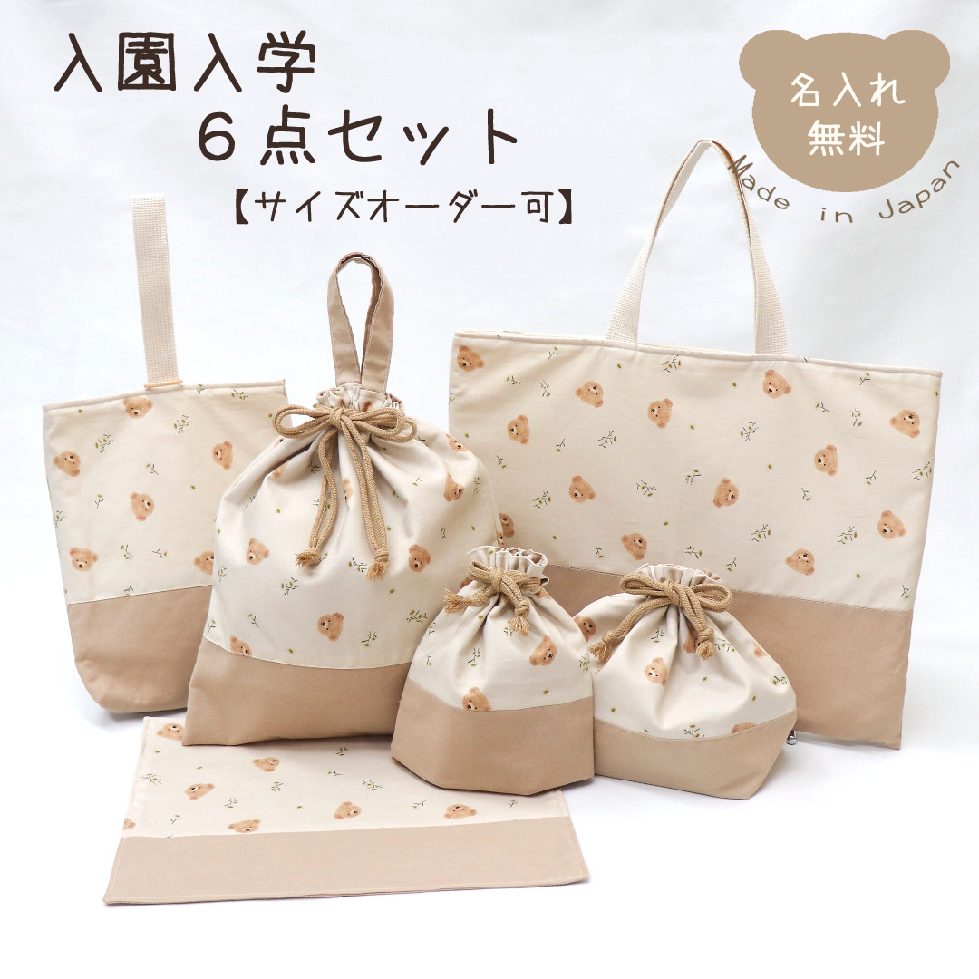 入園入学6点セット ベージュ お花 くま 入園グッズ 入学グッズ 6点セット レッスンバッグ シューズバッグ 体操着袋 お弁当入れ コップ入れ ランチマット