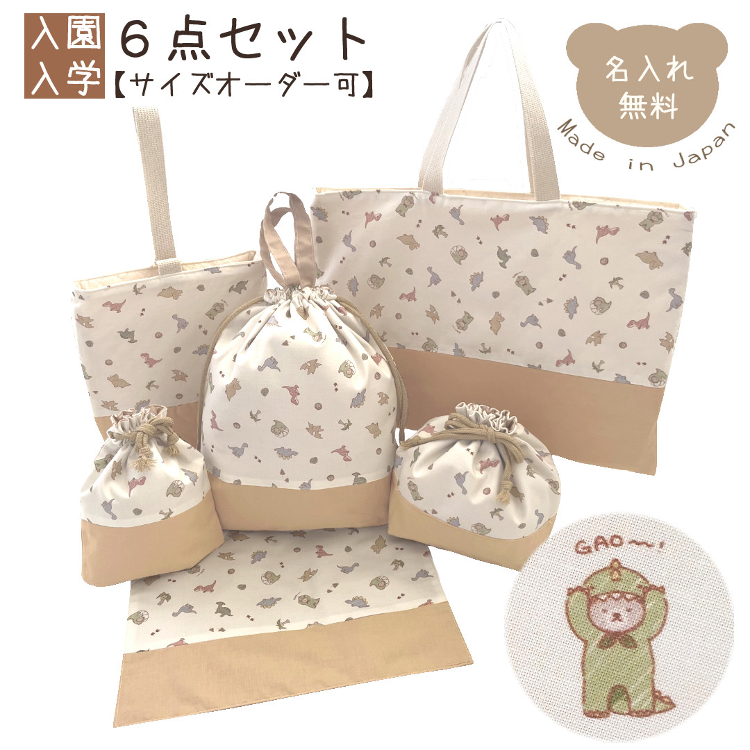 入園入学6点セット くまと恐竜 入園グッズ 入学グッズ 6点セット レッスンバッグ シューズバッグ お弁当入れ コップ入れ ランチマット 上履き入れ テディベア