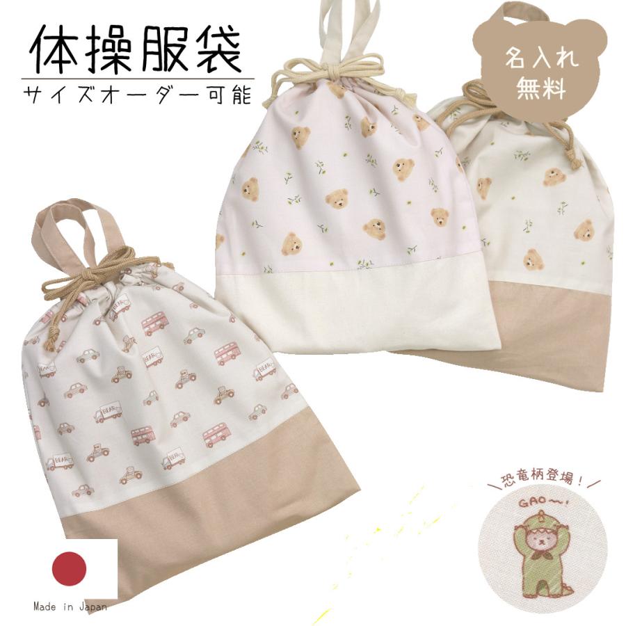 【サイズオーダー可】名入れ ランチ3点セット くまとお花 くまとくるま くまと恐竜 ハンドメイド 入園グッズ 入学グッズ お弁当袋 コップ入れ ランチマット 巾着