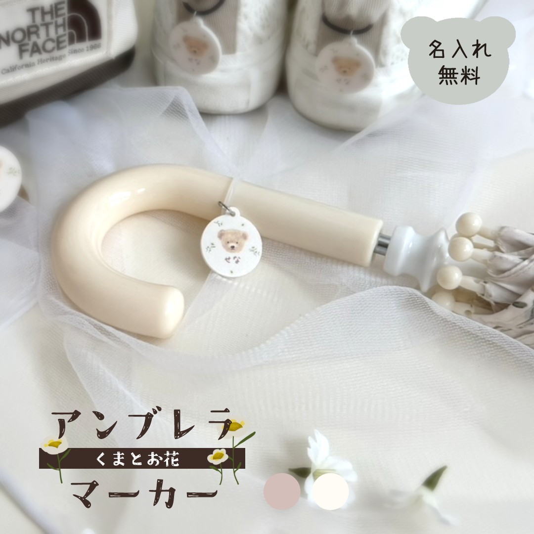 くまとお花 アンブレラマーカー 名前入り 名入れ お名前 めじるしアクセサリー ネームマーカー ネームプレート ペットボトルマーカー ストローマーカー