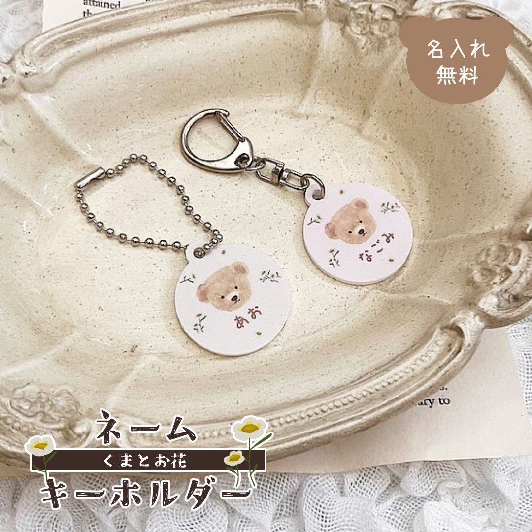 くまとお花 ネームキーホルダー ネームタグ 名入れ お名前 アクリル キーホルダー ネームプレート 幼稚園 保育園 小学校 入学 入園 通園 準備 グッズ 鞄 バッグ