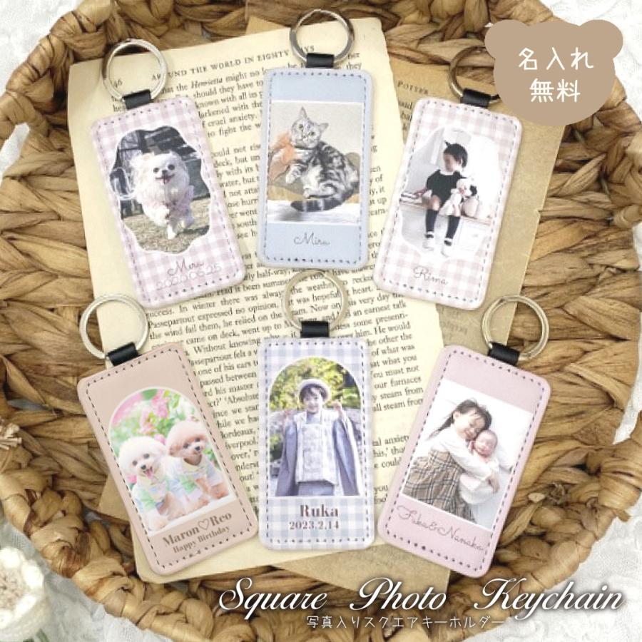 写真入りキーホルダー スクエア 名入れ無料 レザー キーリング キーチャーム 入...