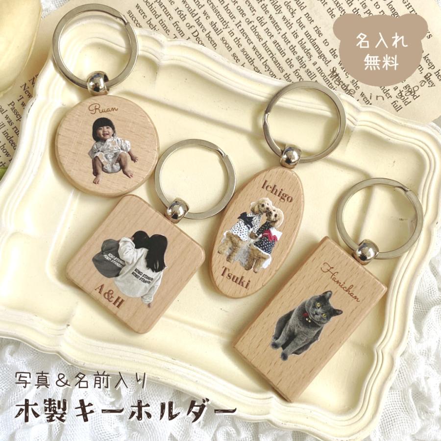 お名前&写真入り 木製キーホルダー 写真キーホルダー キーリング ウッド 名入れ...