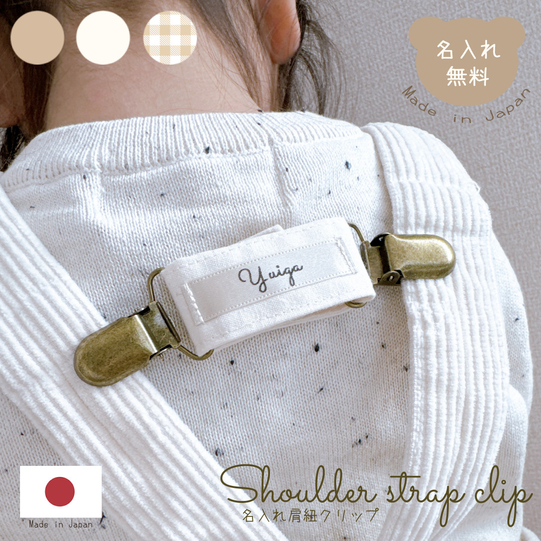 名入れ 肩紐クリップ ギンガムチェック チェストクリップ サロペットクリップ マルチクリップ ショルダーストラップ ブランケットクリップ 固定クリップ