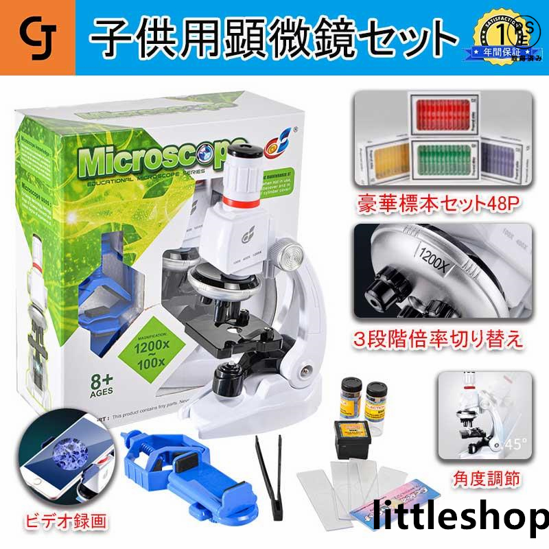 顕微鏡 実験 知育 生物顕微鏡と反射顕微鏡 子供用 小学生 進学祝い お子様、お孫さんのプレゼントに最適! 標本48付 学習用 1200x