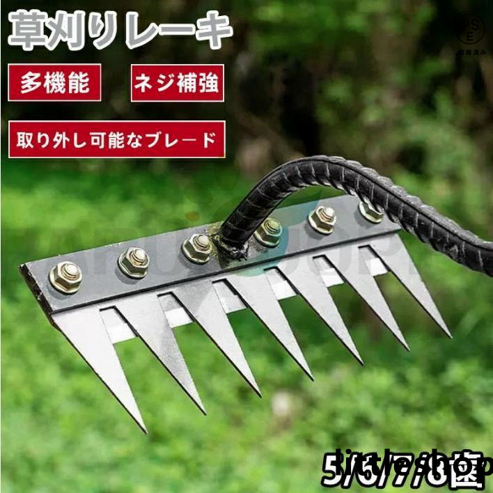 草刈りレーキ ガーデンレーキ 5/6/7/8本爪 5/6/7/8歯 熊手 草刈り 多用途 軽量 金属炭素鋼レーキ 多用途 草削り 雑草取り 雑草抜き 雑草対策 草取り 多機能熊手