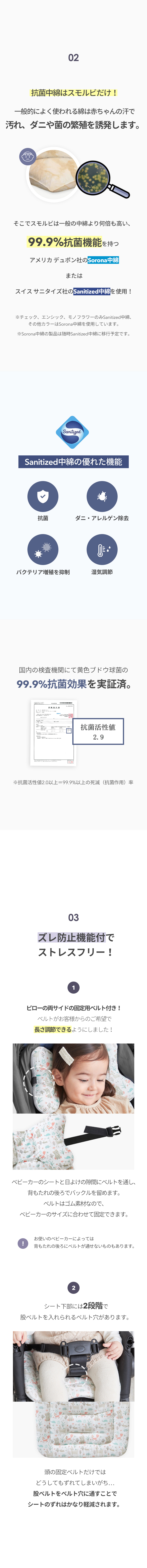 ベビーカーを卒業する日まで長く使えるベビーカーシート、それがスモルビのベビーカーシートです。