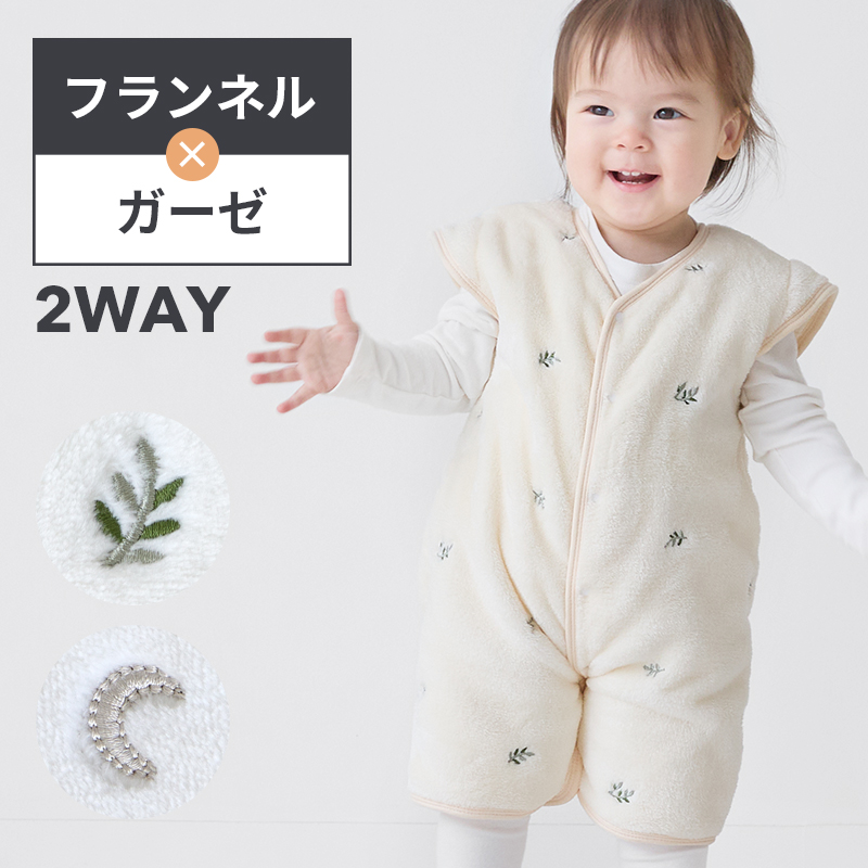 スリーパー 冬用 袖あり 袖なし 2WAY 冬用 フランネル ガーゼ 着る毛布 防寒 パジャマ 秋 冬 赤ちゃん 新生児 キッズ ベビー 子供 前開き 0歳 1歳 2歳 3歳 刺繍