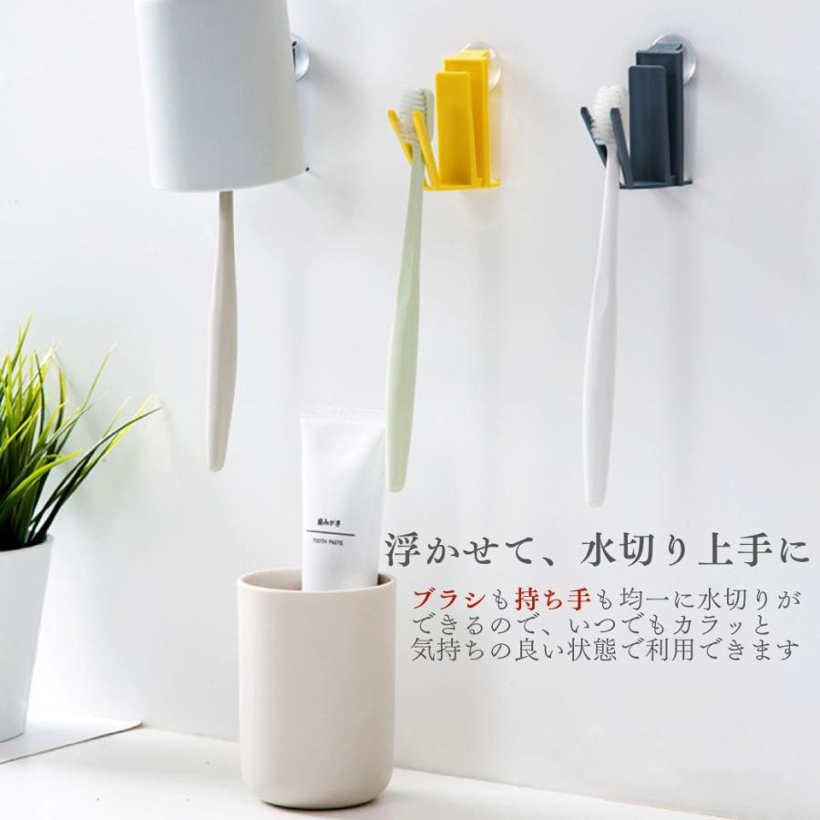 歯ブラシホルダー 吸盤 浮かせる 歯ブラシスタンド 衛生的 おしゃれ 壁掛け コップ 吊り下げ 2個セット 爆買
