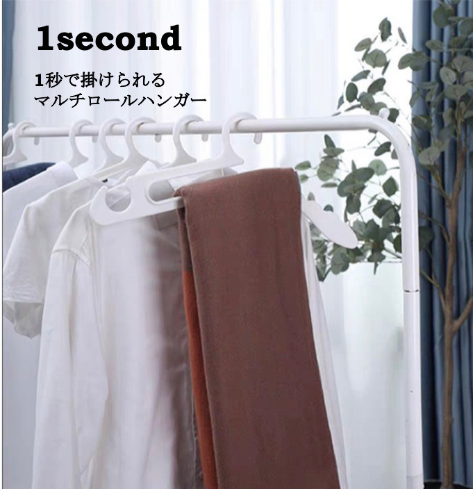 ・特徴:U字になっているので、首元が詰まっている衣服も首を伸ばさずハンガーにかけることができます。凹凸部分が4か所あるので、様々な衣類に対応できます。フック部分でベルトやアクセサリーなどをかけることができます。従来のハンガーより高い位置から掛けることができますので、ワンピースなどの丈の長い衣類も気にせずに掛けることができます。