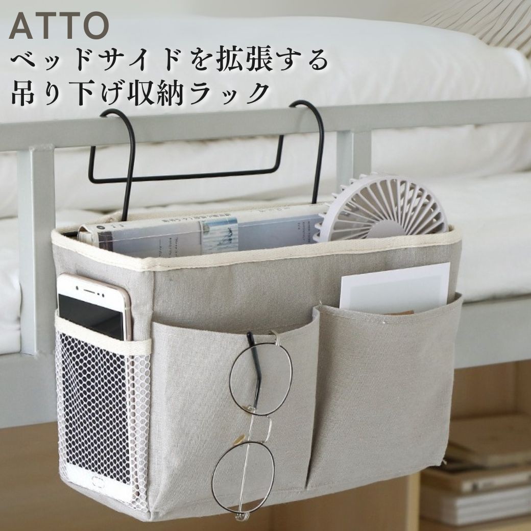 ベッドサイド 吊り下げ 収納ラック リモコン入れ ベッドサイドポケット おしゃれ 入院 すきま収納 引っ掛け アイデア 傷つけない ATTO 送料無料 ベッドサイド収納 リモコン リモコン収納 ポケット 小物入れ 便利グッズ 生活 リモコンラック