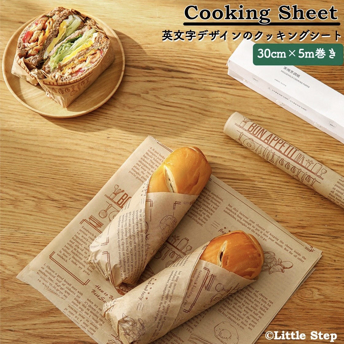 クッキングシート 英文字柄 オーブンシート オーブンペーパー カフェスタイル 包装紙 耐熱200℃ 加熱時間20分 幅30cm×8m巻き