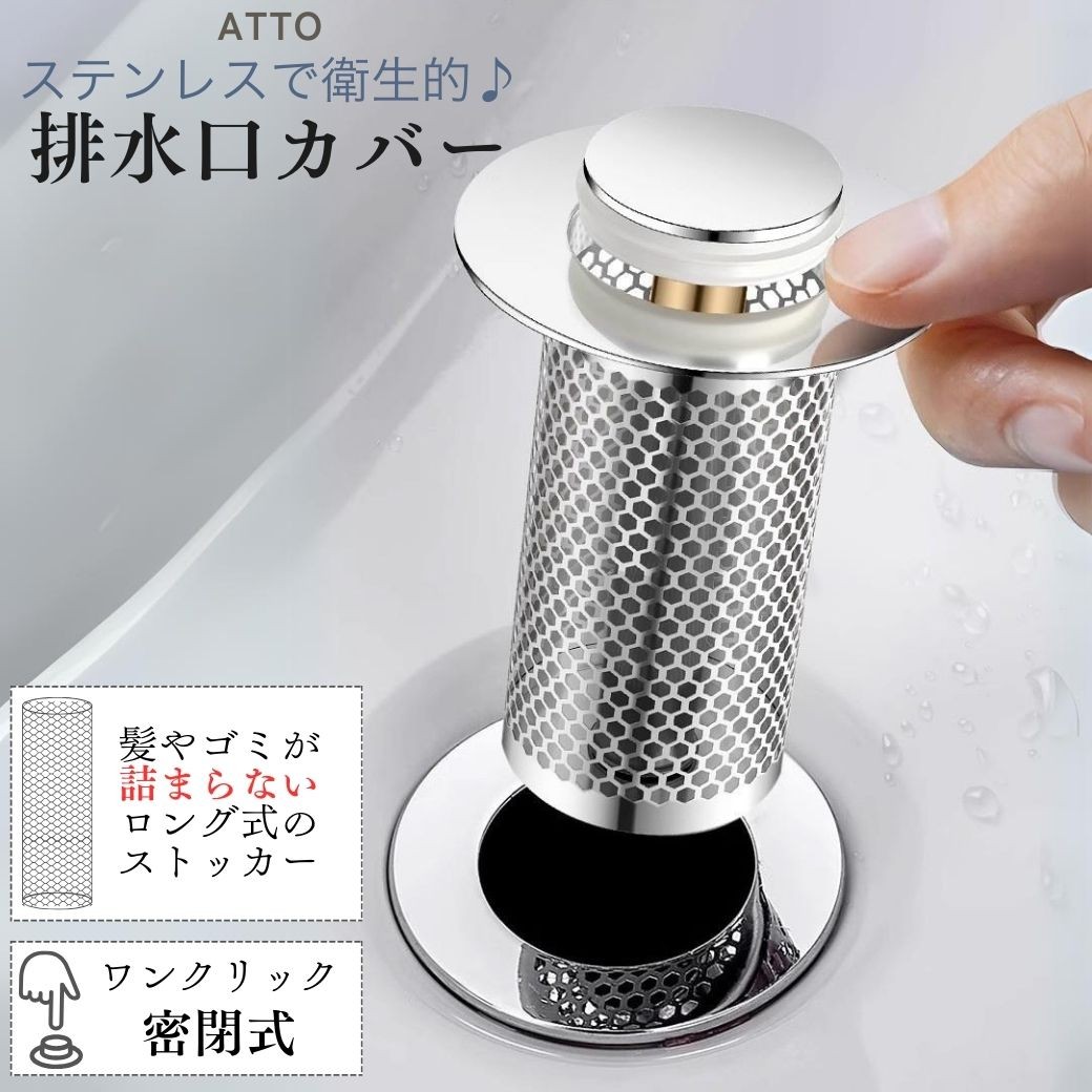 排水口カバー ステンレス おしゃれ 洗面台 ヘアキャッチャー ワンプッシュ キッチン 賃貸 フィルター シンク 髪の毛 キャッチ ゴミ受け 密閉式 詰まらない ATTO 送料無料