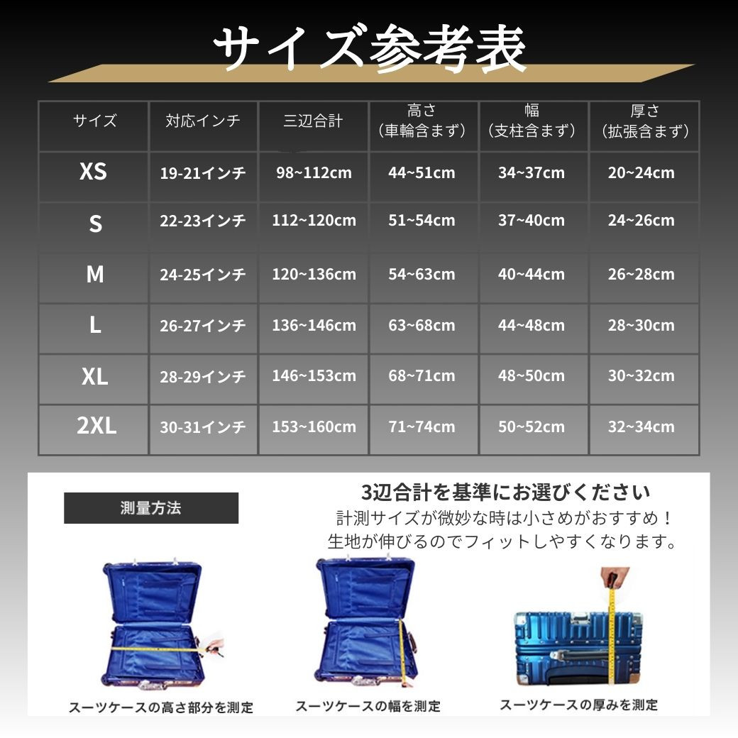 スーツケースカバー 伸縮 厚手 キャリーケースカバー 防水 6サイズ展開 ダブルロック 頑丈 XS 爆買