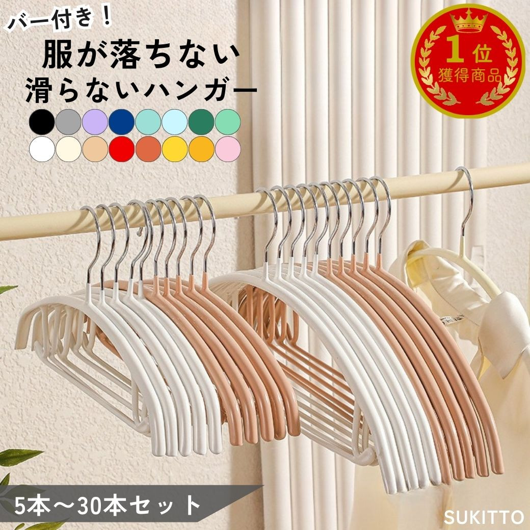・特徴:服を落とさない滑らないハンガー。コートなどの重たい洋服や洗濯物も掛ける事が出来ます。バー付きのハンガータイプでタオルを掛けたり、ズボンやマフラーなども掛ける事が出来ます。バーの端はフック式になっているので、キャミソールや下着を掛けることも可能です。カラフルな色展開も人気のアイテムです。