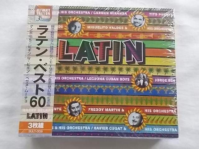 【ラテンベスト60:CD3枚組:新品】★主な収録曲★(DISC-1)(ペレスプラード楽団)■マンボNo.5■タブー(カルメンミランダ)■タイ(ピシンギーニャ&ベネジートラセルダ)■今も想い出す(ドンアスピアス楽団)■南京豆売り(ウーゴブランコ楽団)■コーヒールンバ(フレディマーチン楽団)■マイアミビーチルンバ■他全20曲(DISC-2)(ザビアクガート楽団)■マイショール■ビギンザビギン(レクォーナキューバンボーイズ)■ラクカラチャ(ノロモラレス楽団)■ノロズジャンプ(ロスインディオスタバハラス)■マリアエレーナ(ジョルジベン)■マシュケナダ(パーシーフェイス楽団)■ラパロマ■ティコティコ■他全20曲(DISC-3)(トリオロスパンチョス)■ベサメムーチョ■キサスキサスキサス(エルナンドアビレス)■うぬぼれた心(ミゲリートバルデース楽団)■黒人娘レオノー(ティトプエンテ)■ランカンカン(マチート楽団)■ソパデピチョーン(ハリーベラフォンテ)■バナナボートソング■他全20曲●3ULT-009