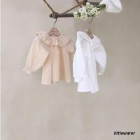 ブラウス 長袖 ベビー キッズ 子供服 女の子 トップス 単品 春服 秋服 無地 フリル 袖ゴム 襟付き カジュアル かわいい おしゃれ お出かけ ホ