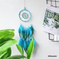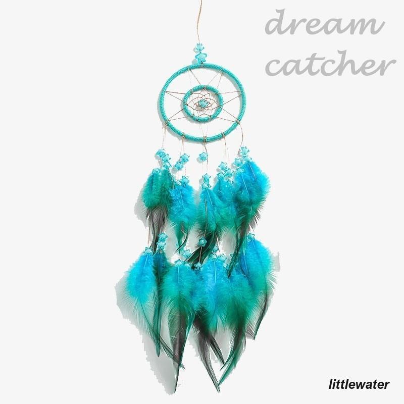 ドリームキャッチャー フェザーペンダント ウィンドチャイム オーナメント インテリア 玄関 窓 飾り 装飾 ビーズ 羽毛 羽根 手作り 青 ブルー プ