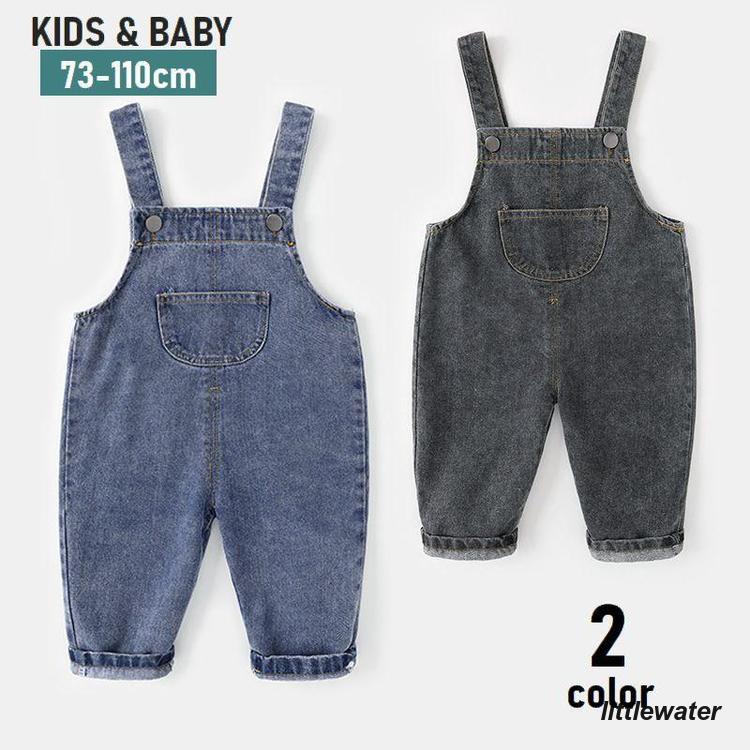 オーバーオール サロペット デニム キッズ ベビー 子供服 女の子 男の子 ボトムス ジーンズ ジーパン 長ズボン ロングパンツ つなぎ ポケット付き
