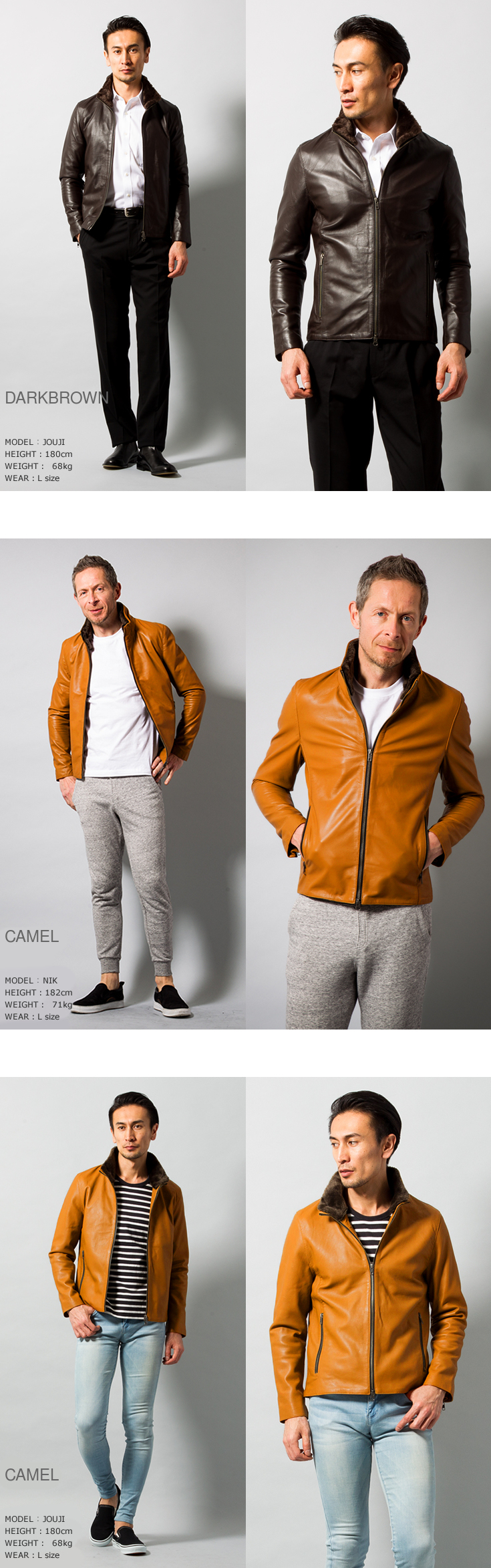 | 素材 | 表地:プレミアムシープ羊革 (0.6〜0.7mm) 裏地:ポリエステル 着脱襟ボア:アクリル > Real Leather ~本革の魅力~ |