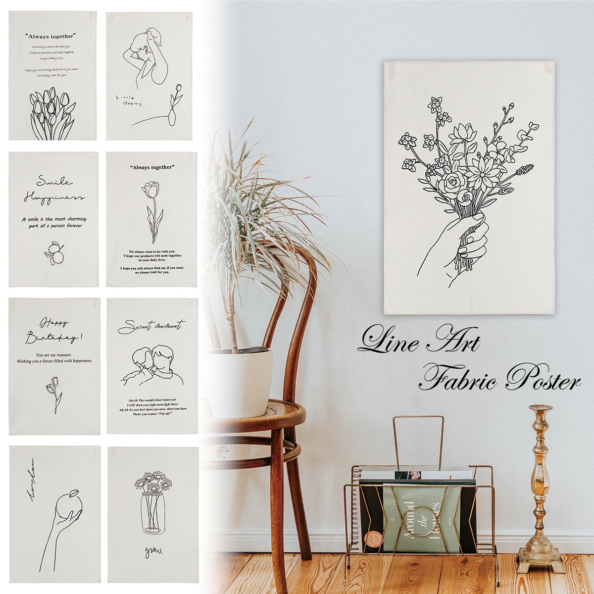 ファブリックポスター タペストリー 北欧 線画 おしゃれ ナチュラル シンプル モダン アート 癒し 部屋 飾り付け オンライン飲み会 インスタ映え グッズ 小物 インテリア 布 zoom 背景 映え 二次会 ウェルカムボード