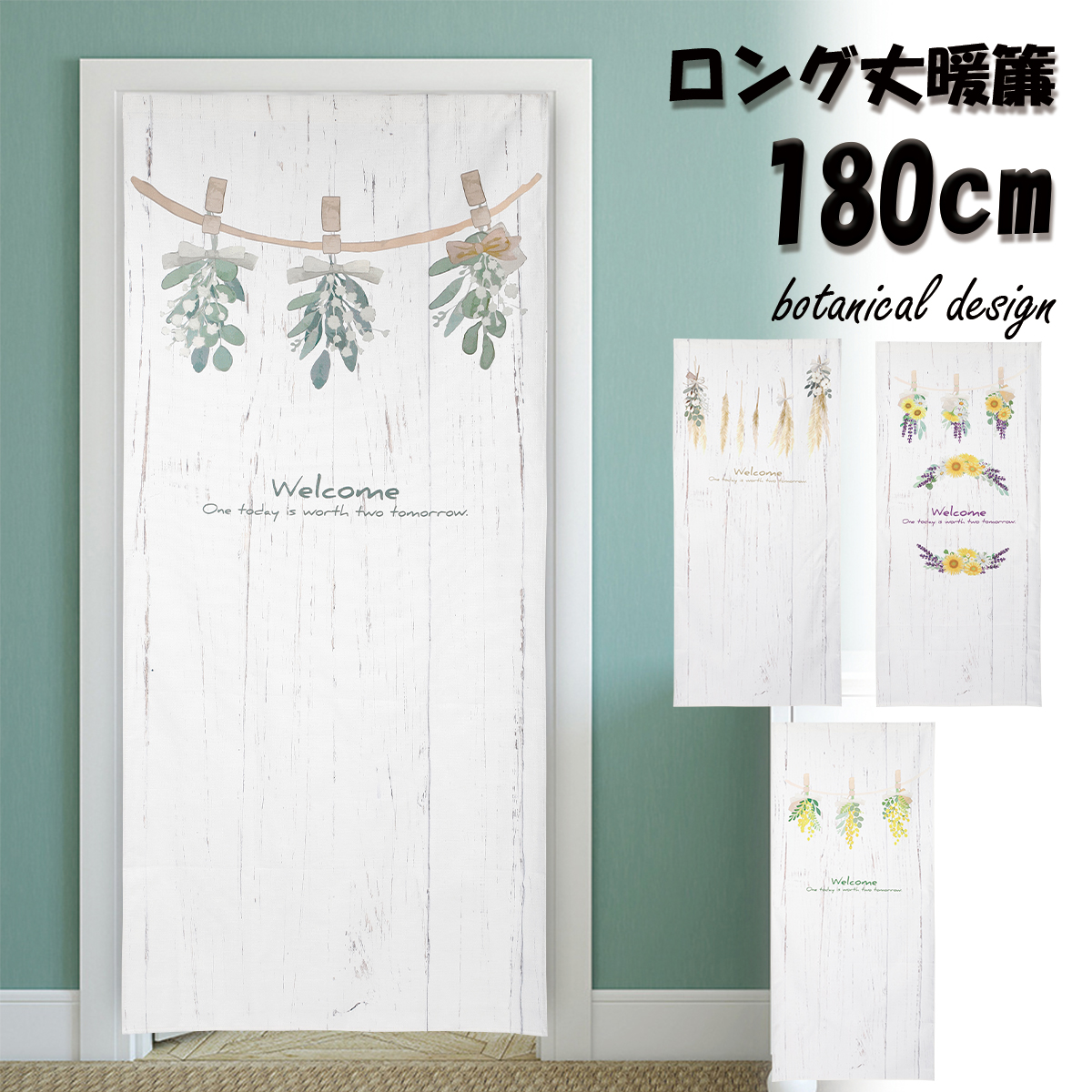 のれん 暖簾 ロング丈 180cm ボタニカル 北欧 棚 ラック スワッグ ドライフラワー 白木目 裏 隠す インテリア 目隠し 布 おしゃれ カバー カーテン アレンジ リメイク 装飾 収納 かわいい 可愛い 間仕切り 押し入れ クローゼット 脱衣所 棚 玄関