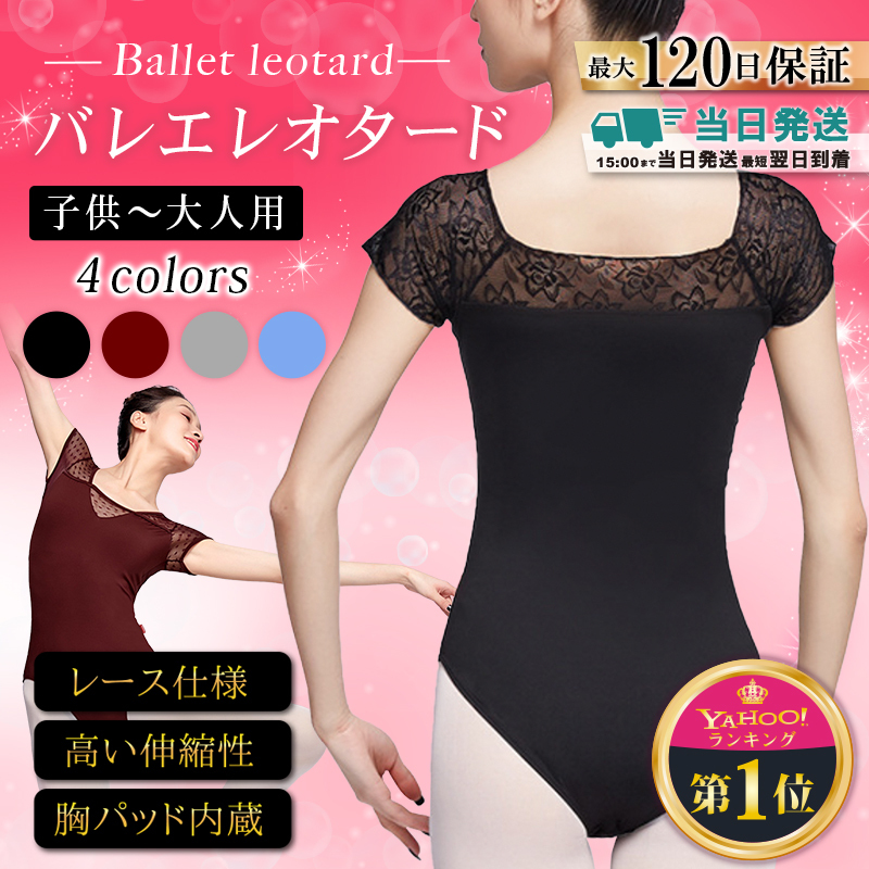 バレエ レオタード 半袖 新体操 ダンス レース パッド内蔵 練習 発表会 衣装 大人 子供 ジュニア
