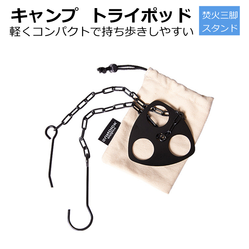 焚き火三脚 焚き火台 リング キャンプ トライポッド ステンレス アウトドア バーベキュー 軽量 スタンド 炊飯