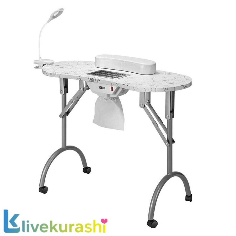 ネイルテーブル ポータブル 折りたたみ式 ネイルデスク キャリングバッグ付き 可動式 ネイルダストコレクターを内蔵した ネイルアームレストクッション 集塵機フ