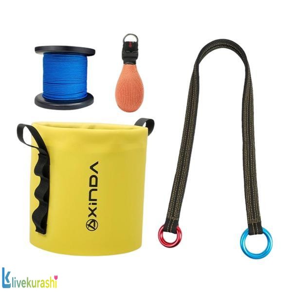 4ピースアーボリストスローラインキットとロープバッグスタティッククライミングロープポータブルトレーニングツリーロッククライミング緊急サバイバ