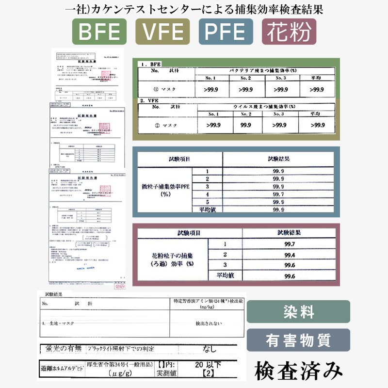 ■立体3層構造でしっかりブロック、PFE・BFE・VFE・花粉を99% カットする高性能フィルターを使用【カケンテストセンター試験により】