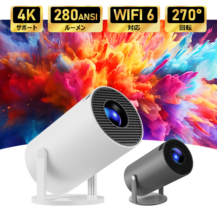 プロジェクターは270°回転可能なスタンドを搭載しているため、スタンドを追加購入する必要はありません。投影角度を自由に調整し、ご自宅の壁や天井に投影することができます。卓上やベッドなどにそのまま置くができ、正面だけでなく天井などにも投影でき、寝転びながらでもコンテンツを楽しめます。設置場所に制限がなく、本当に自由な投影を実現します!