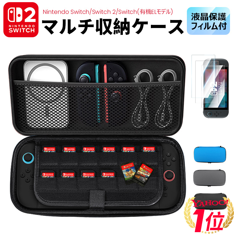 超P祭・15%OFFクーポン Nintendo Switch 2 ケース 保護フィルム 2枚セット ブルーライトカット 有機ELモデル 収納ケース ニンテンドー スイッチ カバー 任天堂
